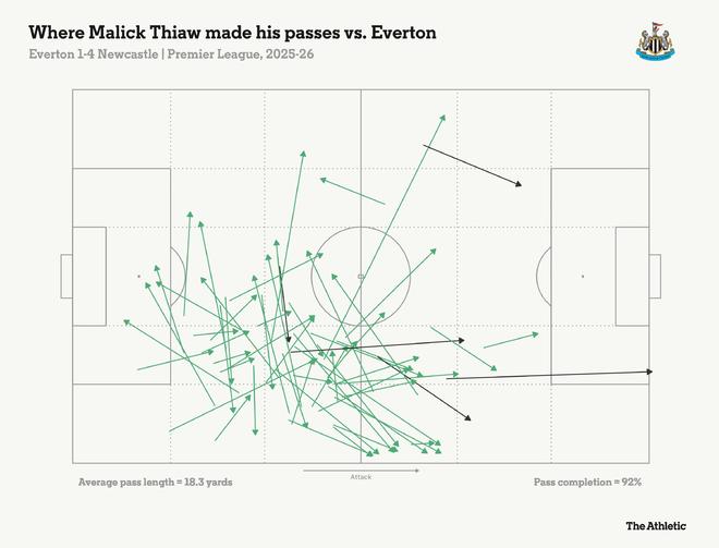 本赛季纽卡斯尔只有23.9%的传球是向左路发展的——这是联赛中第二低的比例——突显了因伯恩被迫客串左后卫以及安东尼-戈登状态下滑而导致的进攻组织问题。佳夫和霍尔之间的默契有望纠正这种失衡,尽管与预期模式相反,正是霍尔传给埋伏在门前的佳夫的传中,造就了纽卡斯尔的第四个进球。